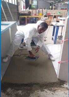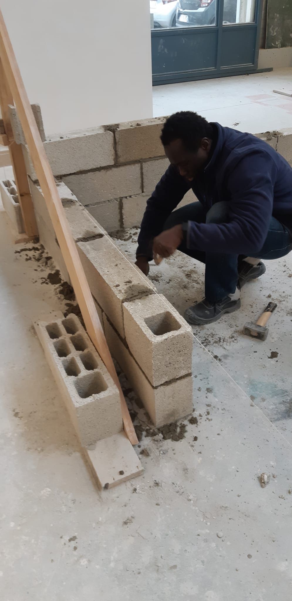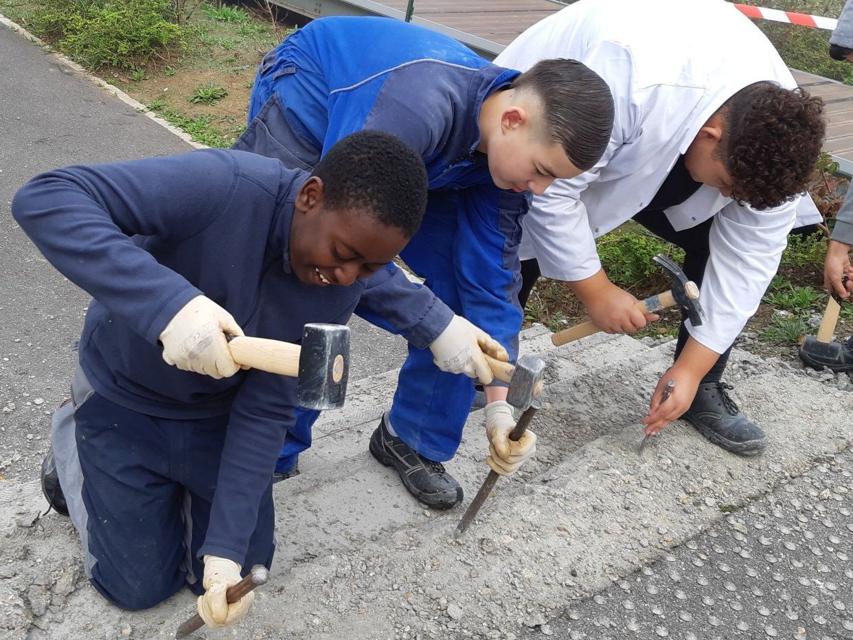 Une marche d'escalier se désagrégeait. Les élèves de Terminale CAP maçon, promotion 2022, ont été envoyé sur le chantier pour repérer ladite marche et faire des massif béton pour les lucandes.